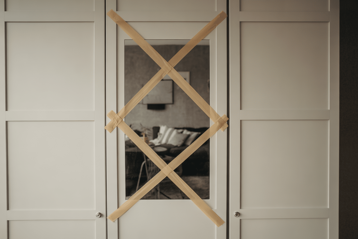 - Fixera: Tejpa i X-mönster över spegeln. Stötta ev. med tillfälliga lister tills limmet tagit (följ härdtid).